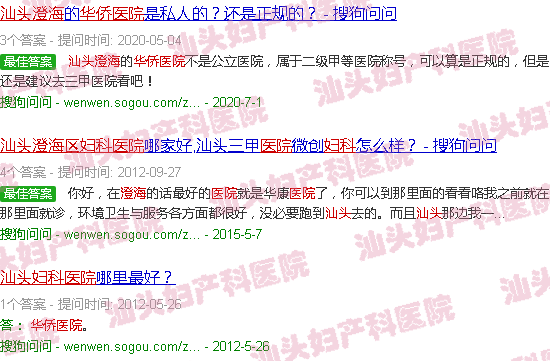 关于“汕头市澄海华侨医院妇产科”的内容。