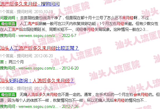 关于“汕头人流后多久来月经”的内容。
